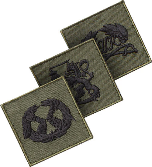 Saatavilla on neljä kuvissa näkyvää vaihtoehtoa: Pohjan Prikaatin, Kymen Jääkäripataljoonan (KymJP), Pohjois-Suomen Viestipataljoonan sekä Hämeen Prikaatin tunnukset.